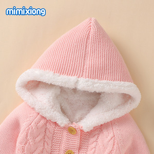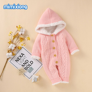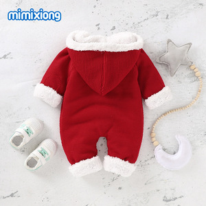 insホットセール秋冬新作幼児フード付きベルベットワンピースロンパース