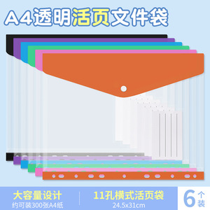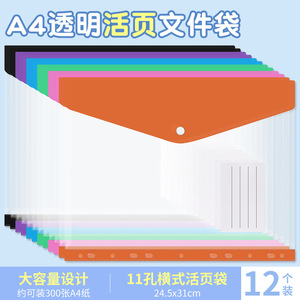 透明文件袋彩色档案袋学生用文件收纳袋带名片资料袋a4按扣