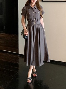 リネン+テンセル リヨセル miuシリーズ 高知老銭風シャツワンピース フレンチスタイルワンピース