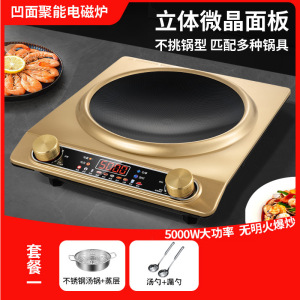 5000W彩屏金色凹面电磁炉【送炒锅+汤锅+铲捞勺】