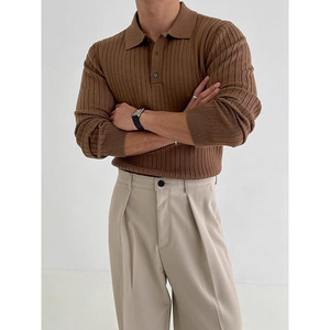 跨境爆款欧码大码长袖针织衫毛衣男春秋轻熟修身商务T恤工厂批发