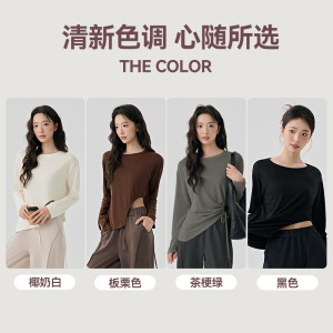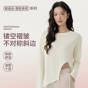 カジュアルでゆったりとしたハイエンドのヨガウェアブラウス、女性用サイドドローストリングフィットネスブラウス、薄くて通気性のあるスポーツウェア長袖