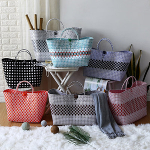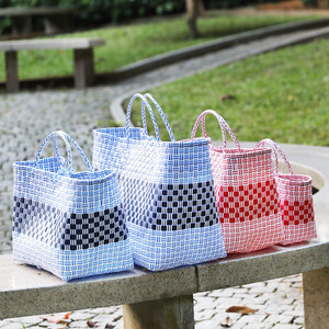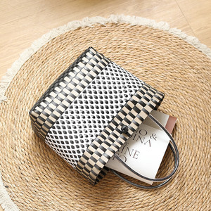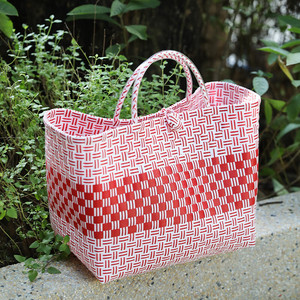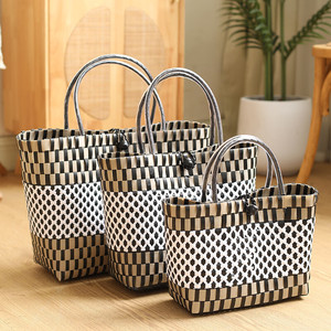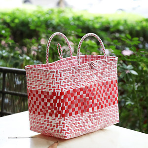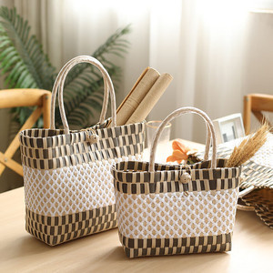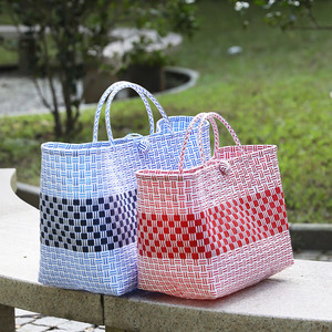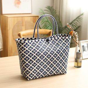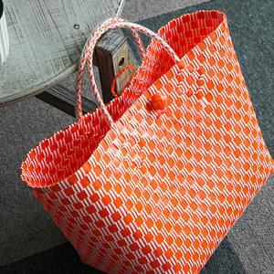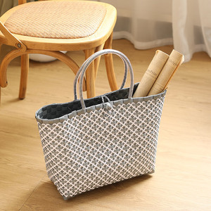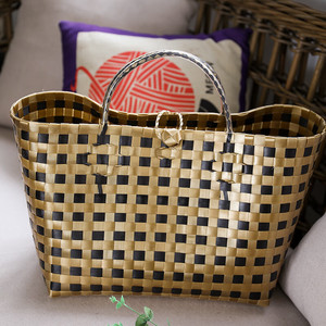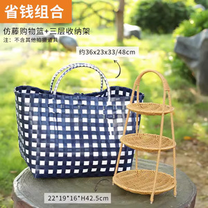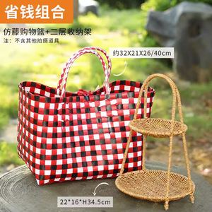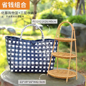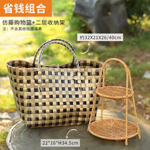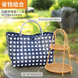工場直販 ショッピングバスケット 模造籐製 大型バスケット 編み込み買い物かご ピクニックバスケット 収納バッグ 入浴かご