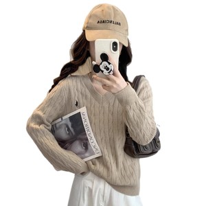 ツイスト V ネックプルオーバー長袖ニットセーター女性のレトロ刺繍新 ins2025 秋冬トップ多用途長袖