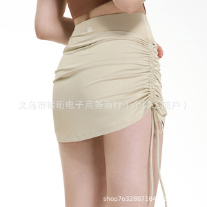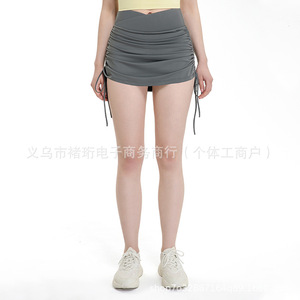 ハイウエスト スカート プリーツ ドローストリング フェイク ツーピース ヨガ グループ 女性