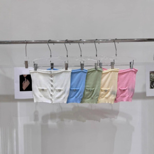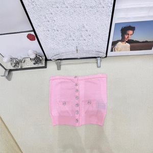 25年夏季新款香家重工飞鸟纽扣花边针织单排扣抹胸修身显瘦百搭女