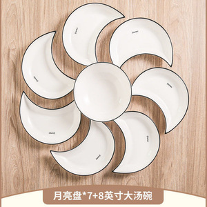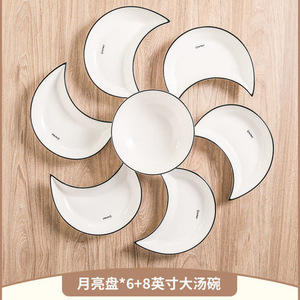クリエイティブインターネットセレブホームムーンプレート組み合わせ食器新年団子テーブル大皿セラミックプレート皿とボウルセット