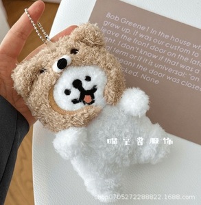 线条小狗挂件可爱小狗头套钥匙扣玩偶背包挂饰送情侣生日礼物毛绒