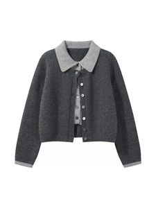 女性のための偽ツーピースカレッジスタイルウールセーター2025秋冬新しい気質年齢を軽減する多用途ニットカーディガントップ