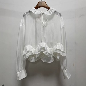 2025秋新款日系甜美少女浪漫荷叶领雪纺衬衫上衣深圳南油高端女装