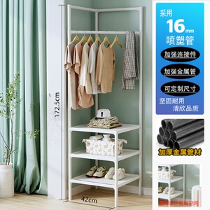 家庭用コートラック、床置きコーナーハンガー、多層収納、寝室のベッドサイドの洋服掛け、バッグと靴のラックが一体化