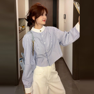 フレンチファッションブルーストライプシャツ女性のための 2025 新作春と夏のシャツトップデザイン長袖シャツ