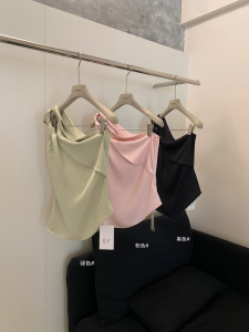 WGWE 夏ファッション優しいスタイル不規則なクールサテンダブルツイストオフショルダーベストウエストシャツ W6304
