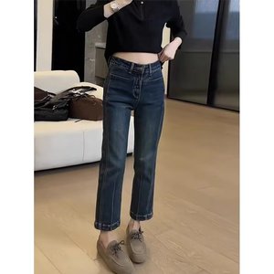 大码弹力九分牛仔裤女春夏胖mm梨形身材小个子高腰显瘦直筒烟管裤