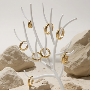 卸売ゴールデン光沢のあるフープイヤリングステンレス鋼ヨーロッパとアメリカのシンプルなチタン鋼イヤリングクロスボーダージュエリーショップ供給