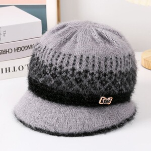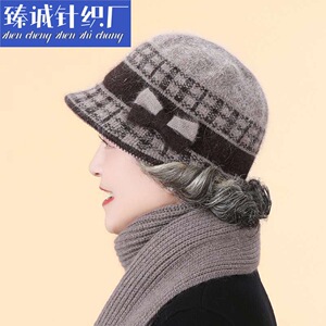 妈妈帽子冬季加绒中老年女加厚奶奶保暖盆帽洋气毛线帽老人针织帽