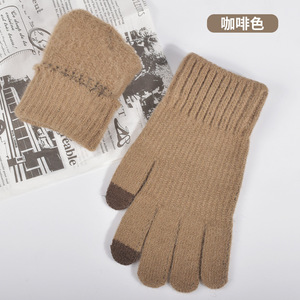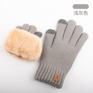クロスボーダー Amazon ニット手袋暖かいメンズプラス防寒プラスベルベットウールタッチスクリーン手袋メーカー卸売