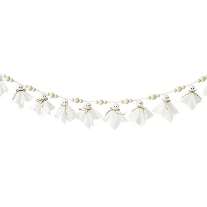 新しいハロウィンウッドビーズガーランドホワイトゴースト布人形木製ビーズ DIY ホーム暖炉装飾吊り装飾品