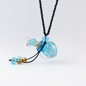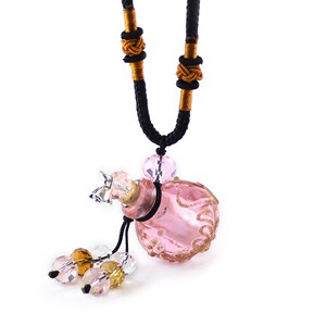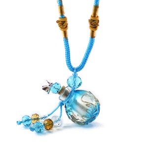 厂家批发扁圆巴洛克琉璃精油瓶项链香水瓶吊坠挂件随身香薰项链