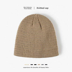 秋冬韓国風ニット帽レディース暖かいベルベットつば帽子無地ウール帽子メンズ万能プルオーバー耳保護防寒帽子