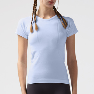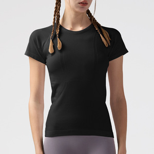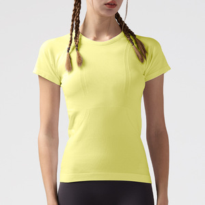 ルル半袖ヨガウェア速乾性 Tシャツレディースラウンドネックトップス痩身スポーツトップススポーツスタイル通気性フィットネスウェア