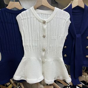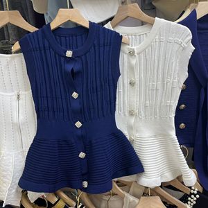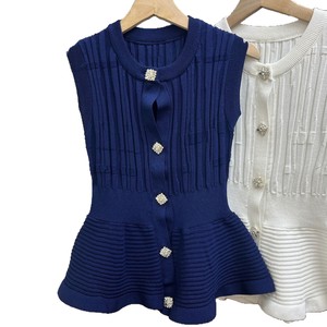 フレンチスタイルのノースリーブニットベスト、女の子用サマーカーディガン、高級スリムウエストトップ、半袖