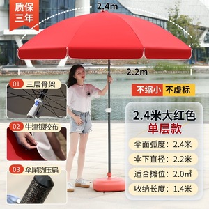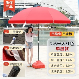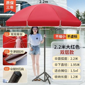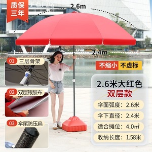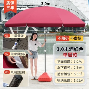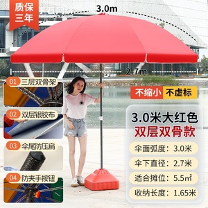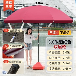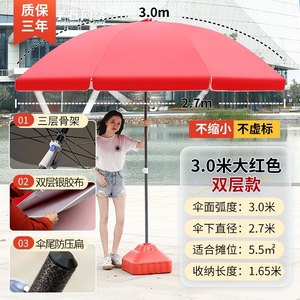 【ダブルボーン16本骨】ビッグレッド3.0m【二層銀糊傘カバー】+太い傘竿⚑✦