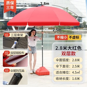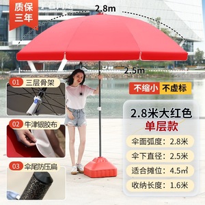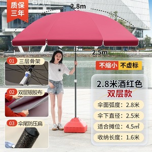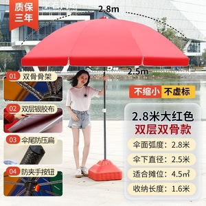 【ダブルボーン16本骨】ビッグレッド2.8m【二層銀糊傘カバー】+太い傘竿⚑✦