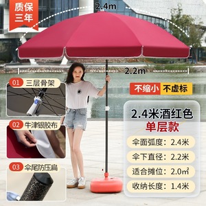 バーガンディ 2.4m [二層銀糊傘カバー] + 太字傘竿⚑✦