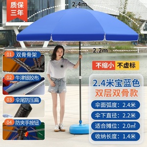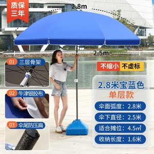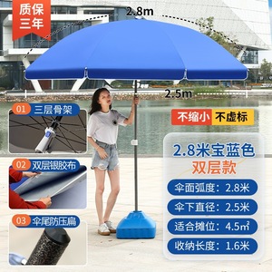 【ダブルボーン16本骨】サファイアブルー2.8m【二層銀糊傘カバー】+太めの傘竿⚑✦