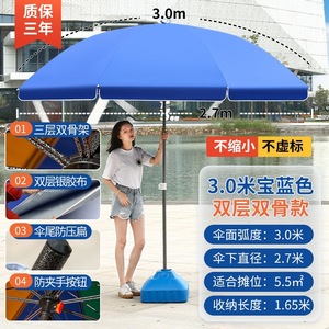 【ダブルボーン16本骨】サファイアブルー3.0m【二層銀糊傘カバー】+太めの傘竿⚑✦