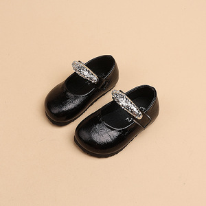 女童公主鞋2025秋季新款小女孩英伦风浅口水钻皮鞋女宝宝软底单鞋