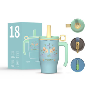 青い漫画の子供用カップ(防塵ストロー蓋)