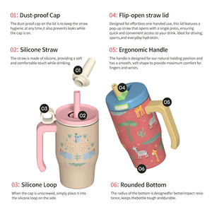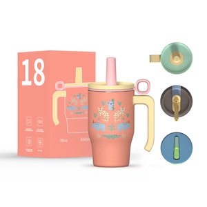 ピンクの漫画の子供用カップ (防塵ストロー蓋)