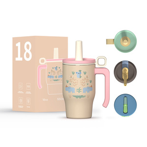 ベージュの漫画子供用カップ(防塵ストロー蓋)