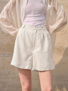 夏季100%纯亚麻短裤女高腰显瘦五分裤a字热裤度假阔腿裤休闲百搭