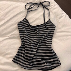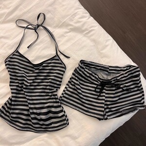 薄款夏季女士睡衣条纹挂脖吊带短裤套装带胸垫甜美绑带背心家居服