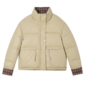 2025 冬の新チェック柄コントラストカラーコットンコートレディースショートスタイルカレッジスタイルプチパンコートトレンディ