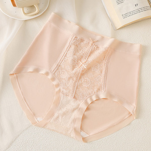 高腰莱赛尔天丝内裤女收腹提臀蕾丝拼接大码抑菌裆女士三角裤头