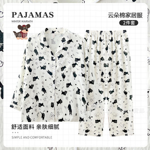 云朵棉睡衣女款春秋夏季2025新款长袖长裤套装甜美卡通少女家居服