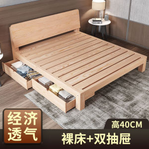 【無垢材通気性ベッド】高さ40+二段引き出し