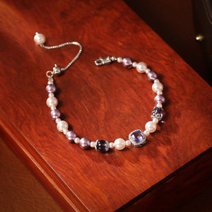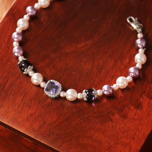 紫色水晶珍珠手链