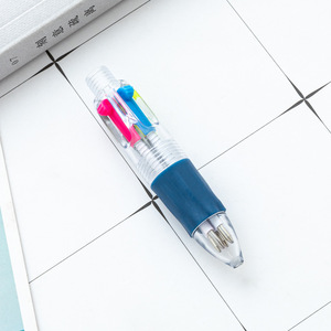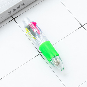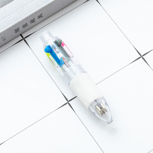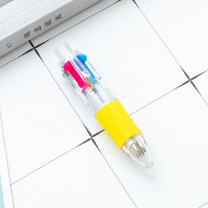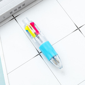 卡通迷你四色圆珠笔可套卡通萌物头彩色手账学生四合一按动手账笔