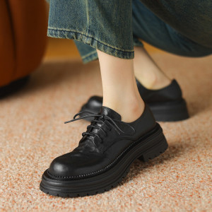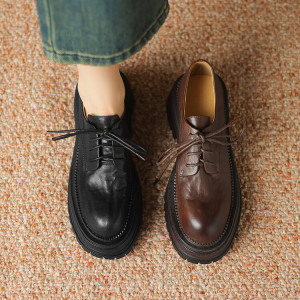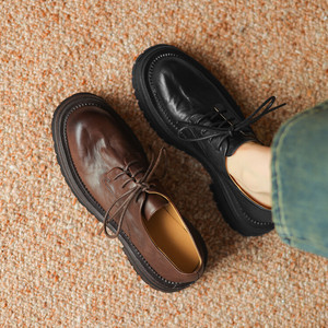 现货~水洗头层牛皮复古英伦风小皮鞋女系带厚底牛津鞋软面真皮鞋