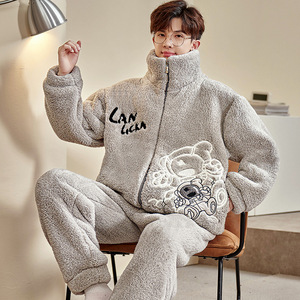 男性用パジャマ冬コーラルベルベット厚みのあるベルベットティーンエイジャー中学生プラスサイズ秋と冬のホームウェアセット