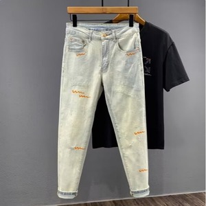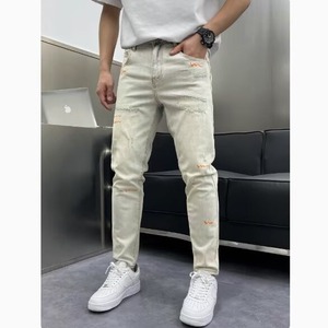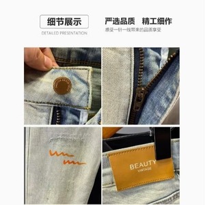 2025春ライトカラー韓国風スリムフィット9点パンツショートメンズトレンドブランドプリント9点ジーンズ