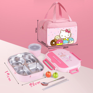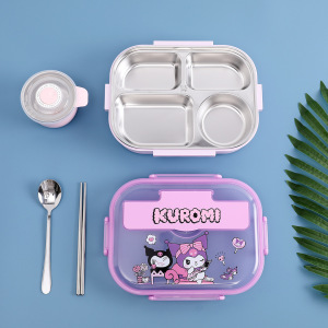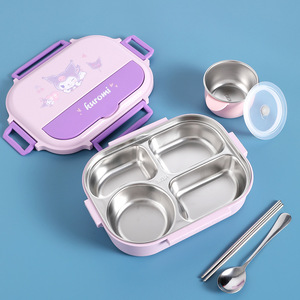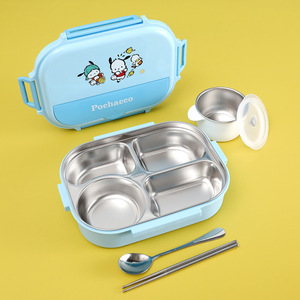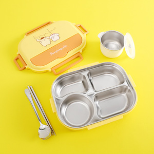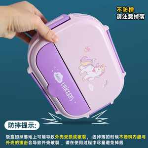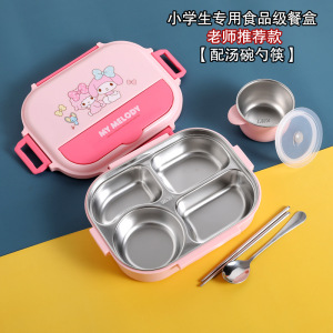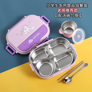 四格便当盒小学生专用饭盒女304不锈钢儿童卡通分隔餐盒防烫隔热