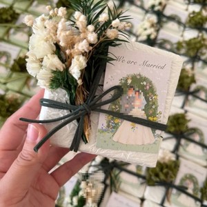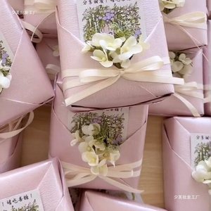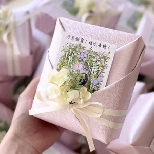 牛皮纸空抽屉盒+粉色包装纸+白色丝带+白色装饰花+装饰绿植+随机卡片+点胶+双面胶一个约10.6x8