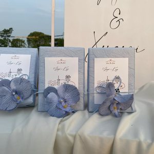 白色抽屉盒空盒+蓝色褶皱包装纸+篮皮绳+蓝蝴蝶兰+随机卡片+点胶一个约10.6x8.6x4cm