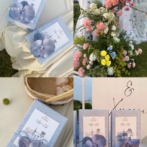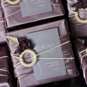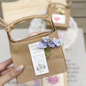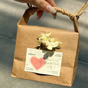 牛色小号粗绳空纸袋+花海夫妇随机贴纸+紫绣球花一个约10x5x9cm